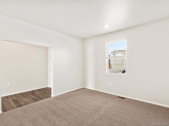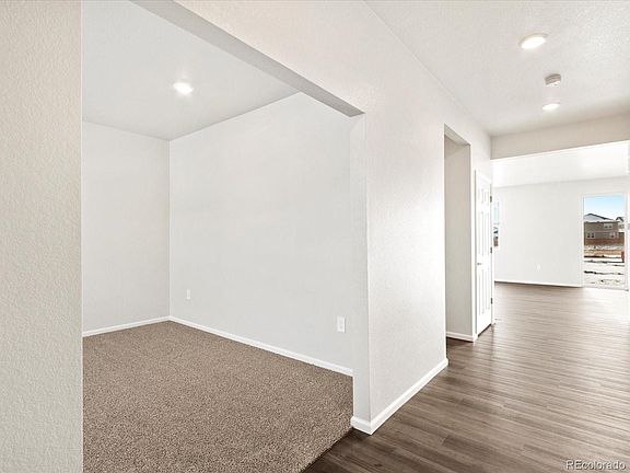 The Chatfield offers a thoughtfully designed layout perfect for modern living. Upon entering, a versatile flex space greets you at the front of the home, ideal for a home office or additional living area. The open flow leads seamlessly into the spacious great room, creating an inviting atmosphere for relaxation or entertaining. This two-story home features four bedrooms, providing ample space for the entire family. The home includes two full bathrooms, a half bathroom, a three-bay garage, and an unfinished basement for future customization. Renowned for quality construction and innovative design, Meritage Homes offers unparalleled energy efficiency with features such as advanced spray foam insulation, ensuring comfort and savings year-round. With our all-inclusive and transparent pricing, all designer upgrades are included, eliminating any surprises. Discover a truly move-in ready home that reflects Meritage Home's commitment to excellence and sustainability. With approximately 2,562 square feet, The Chatfield is located in Hidden Valley Farm, a vibrant new community in the growing town of Severance. Residents can enjoy pocket parks, easy access to hiking and biking trails, and close proximity to retail destinations. Conveniently situated near Fort Collins, Windsor, and Greeley, Hidden Valley Farm offers endless opportunities for adventure and lifestyle convenience.
