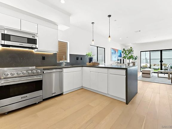 Located in one of San Diego’s most sought-after and vibrant neighborhoods, this thoughtfully designed minimalist inspired residence is beautifully positioned overlooking a lush, tree-lined greenbelt, while providing a seamless blend of luxury and natural serenity. A thoughtful floor plan provides flexibility and privacy with a luxurious primary suite and two additional oversized ensuite bedrooms, two half baths, and a dedicated flex/office space opening to a sun-drenched rooftop deck with sweeping treetop views. Soaring ceilings, and wide-plank oak flooring create a inviting backdrop, while curated designer finishes and natural light infuse every room with warmth and sophistication. At the heart of the home, the chef’s kitchen showcases top-of-the-line Viking appliances, a striking quartz waterfall island, and a spacious open-concept layout perfect for hosting and daily living. The primary suite is a sanctuary unto itself, complete with a spacious closet, spa-inspired bath, and a private balcony that overlooks a canopy of mature trees, offering peaceful morning light and tranquil greenbelt vistas rarely found in urban homes. Outside, enjoy a private fenced yard, a two-car covered open port garage, and the soothing backdrop of nature just beyond your property line—ideal for those who crave a connection to the outdoors while staying rooted in the city. Ease of access to Historic Balboa Park, boutique shopping, acclaimed restaurants, and only minutes to Downtown and San Diego Int’l Airport. This residence delivers the best of all worlds with no HOA and flex living options!