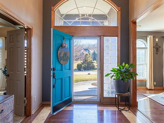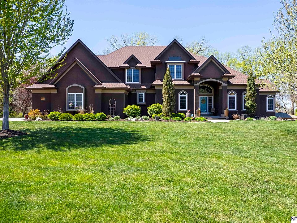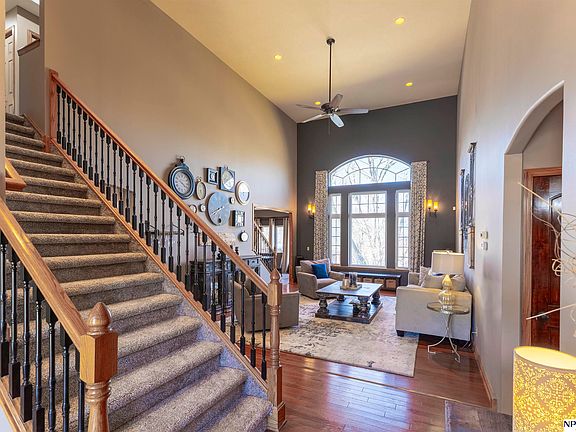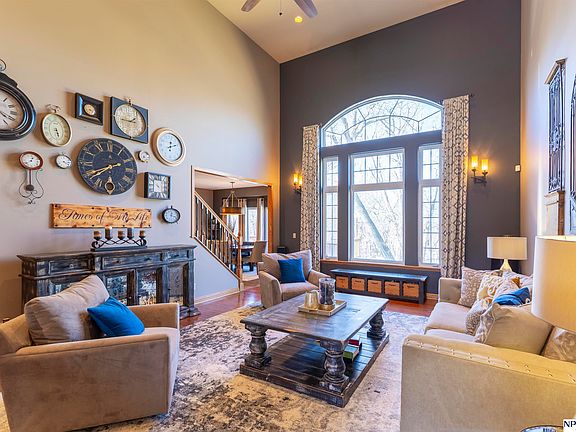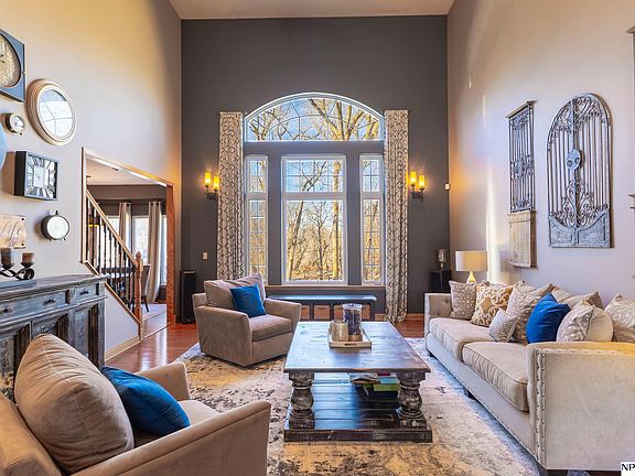 Unique opportunity to own a private oasis minutes to everything Omaha has to offer! From the 5900+ finished SF to the 4.88 acres (partially wooded) backing to the Elkhorn River to the amazing saltwater pool, this property has it all! Inside you are greeted with soaring 18' ceilings, beautiful wood floors and gorgeous views. Wander to the open kitchen/family room area that has been completely remodeled, has access to the deck and is perfect for entertaining. Formal DR, office, wet bar, laundry, and 2 baths complete the main floor public spaces. Retreat to the primary suite featuring vaulted ceilings, dual walk-in closets, FP, private deck and spa like bath. Upstairs are 3 bedrooms; one with a private bath while the other 2 share a Jack & Jill. The walk-out LL is spacious and incredible; 2 more bedrooms, exercise room, bathroom and wet bar. Outside you can enjoy the pool, stroll through the trees to the riverfront or simply relax on the deck and enjoy the serenity!