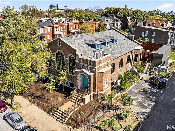 Once an abandoned early-1900s church, this breathtaking property at 1034 South Kingshighway Blvd, St. Louis, MO 63110 has been reborn through a visionary transformation by renowned artist Nabil Mousa. Every inch of this residence is a testament to design, craftsmanship, and imagination — blending history, art, and modern luxury into a one-of-a-kind home that simply cannot be replicated. Inside, a soaring 25-foot sanctuary ceiling immediately commands attention, its intricate architecture accentuated by a rich black stain that adds depth and drama preserving the building’s historic elegance. Three statement chandeliers illuminate the space, creating a breathtaking focal point that bridges the structure’s past and present. A stunning TV room, enclosed by custom iron and glass walls and doors, adds a sophisticated and contemporary edge to the space. The room is fully soundproof, offering privacy and comfort, and features a 12-foot glass wall with sliding doors that opens to the private outdoor area — creating an exceptional flow between indoor and outdoor living. The main level features two bedrooms, complemented by a gourmet kitchen designed for both function and artistry — including a striking 20-foot island, custom cabinetry, a walk-in pantry, and a wet bar perfect for entertaining. Upstairs, the master suite and spacious loft offer a private retreat, highlighted by a custom railing and stair case designed by Nabil Mousa. Original exposed beams in the entryway, library, and one of the bedrooms celebrate the building’s craftsmanship, while new hardwood floors, tile, and refined finishes bring a sense of modern sophistication to this architectural masterpiece. Every element of this home has been renewed — from the roof and structural beams to the HVAC systems (8 units), three-phase electrical panel, and flooring that was completely leveled after a 19” tilt adjustment. The property also boasts new windows, gutters, doors, bathrooms, and a custom kitchen, combining elegance with practicality. The lower level (7,000 sq. ft.) has been reimagined into an extraordinary creative and functional space — featuring a wine cellar, artist studio, vertical garden, two gallery spaces, three offices, and multiple additional rooms with limitless potential.