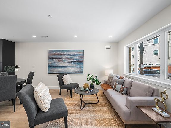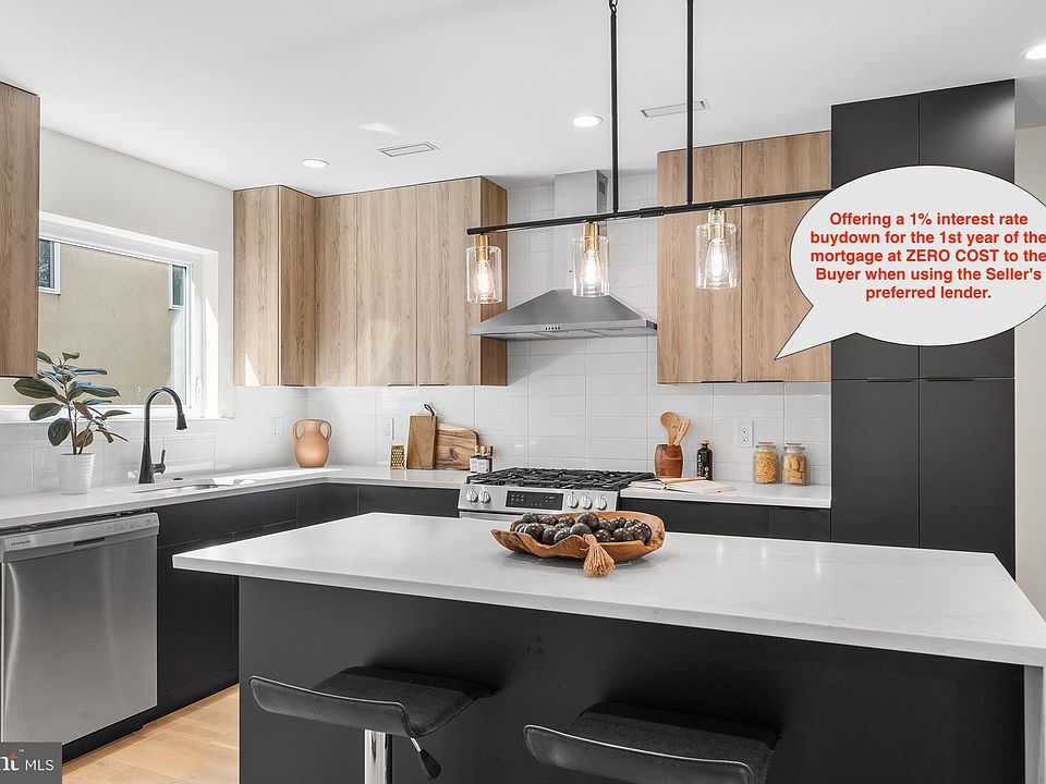 This property offers a 1% interest rate buydown for the 1st year of the mortgage at ZERO COST to the Buyer when using the Seller's preferred lender. Seller is also offering additional buy down or closing cost assistance. Call now for details. Phenomenal new construction value located on quiet Queen Village street with FULL 10 year tax abatement (not the newer, watered down version). Seller will include one year of parking valued at $250 / month (the space is immediately adjacent to the house). Upon entering the house you'll be in the main living area featuring gorgeous wide plank engineered wood floors (exceptionally durable), full living room, dining room, eat in kitchen and powder room. The expansive kitchen features Carrera style quartz surfaces, wrapped island with microwave shelf and room for 4 stools, semi-custom two tone euro style cabinets, range hood, whirlpool and Frigidaire appliances, Alexa enabled sink, powder room, and access to the rear yard (steps to be completed). On the lower level the fully finished basement makes a great media room, home gym, office or future bedroom with all the plumbing for an ensuite bath where the large storage room is currently. The second floor features two bedrooms, each large enough to accommodate queen beds, full closet, wall mounted tv connectors and the hall bath with subway tile flooring complemented by porcelain tile bath surrounding the soaking depth tub. The third floor master suite is fully private, offers a bedroom that is king bed compatible, full bath with luxurious oversized walk in shower in black and white ceramic tile, oversized floating vanity, his and hers closets, and laundry room with utility sink and space for side by side washer/dryer. The show stopping fourth floor lounge has all your entertainment and chill out bases covered with kitchenette, ice machine, beverage fridge, roof deck overlooking skyline in 3 directions, hose bib and electric (no venting stacks visible to obstruct your skyline views) and powder room. Install your wall mounted TV above the kitchenette and this is simply one of the best Game Day rooms in town - bar none! This amazing home also features LED recessed lighting throughout, Ring enabled entry camera, dual zone HVAC, fully sprinklered, and tankless water heater. Make your appointment today. You will not be disappointed.