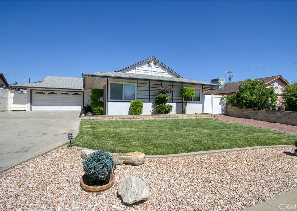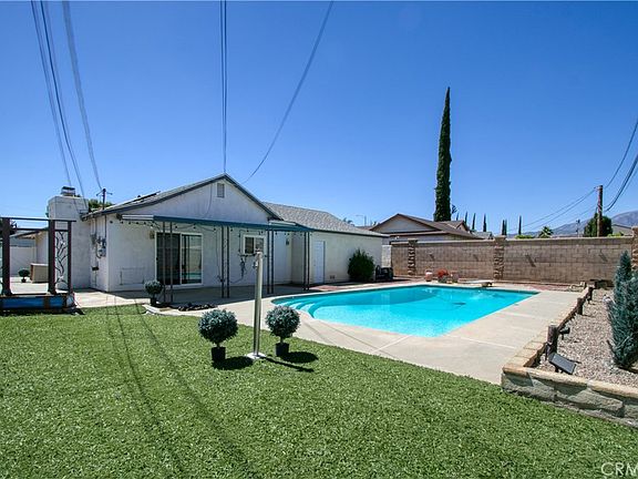 Beautiful POOL Home with 3 bedrooms, 2 bathrooms. Bathrooms have been gorgeously updated. Primary bedroom has modern chic zebra shade blinds and large closet. The en-suite primary bathroom has been updated with modern mirror with built-in LED light and extra features. Shower is also modern and luxurious. 2nd bedroom with wood-look laminate flooring. 3rd bedroom with carpet. Guest bathroom in hallway has been updated with jetted bathtub and sparkling light fixture. Living room has statement fireplace and glass slider door access to the backyard with covered patio and a large refreshing POOL! Dining room has tile flooring. Kitchen has a great view of the pool in the backyard as well and access to the garage. 2-car garage and a LONG LONG driveway! Side yard features a wide gate for anyone who is looking for additional space with access. The covered patio is a great shaded area for outdoor recreation. Pool is an amazing backyard oasis! Perfect enjoying the warm California weather! Fridge and dishwasher stay with the home. Washer and dryer hookups in garage.