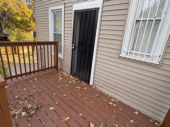Spacious 3 bedroom 1 bath condo style apartment. New forced air heat system. New Ceramic Tile and Hardwood Floors. Newly remodeled Bathroom and New Gourmet Kitchen with New Appliances and Granite Counter-tops. Large unit with Living room and dining room. New porch with nice sized deck. New Windows, Large fenced in yard. Nice block in good neighborhood close to new development and college. Water, sewer, trash and appliances included. Secured off street parking. Great Neighbors!