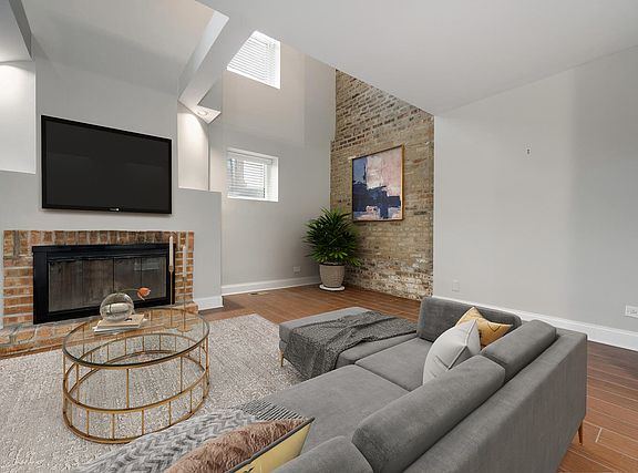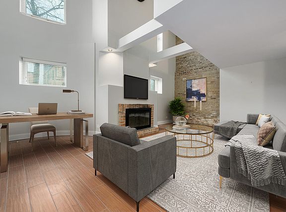 Spacious and sun-filled 1800sqft 2 bed, 2.1 bath Lincoln Park corner duplex! This bright, open floor plan features expansive living and dining areas with 18' vaulted ceilings and a cozy wood-burning fireplace. The open-concept kitchen offers stainless steel appliances, granite countertops, and a generous walk-in pantry. The upper level includes two bedrooms + office and two full bathrooms, including an ensuite primary. Central heat/AC, in-unit laundry and ample storage throughout add to the comfortable living. A private back entrance with a half bath and mudroom lead out to private off-street parking. One parking space included. Unbeatable walkability to DePaul, top restaurants and shops, grocery stores, the farmer's market, Brown Line, lakefront, and Lincoln Park Zoo!