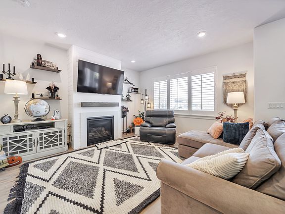 Beautifully maintained Bluffdale home featuring an open and inviting floor plan with tons of upgrades throughout! The kitchen includes quartz countertops, upgraded 42" cabinets, and stainless steel appliances. The great room centers around a cozy fireplace and large windows that fill the space with natural light. Upstairs includes a master suite with a walk-in closet and a bathroom that features both a shower & tub. Convenient location near parks, shopping, and freeway access!
