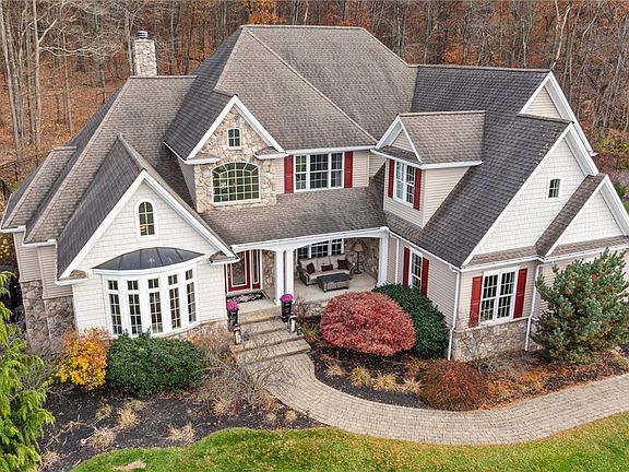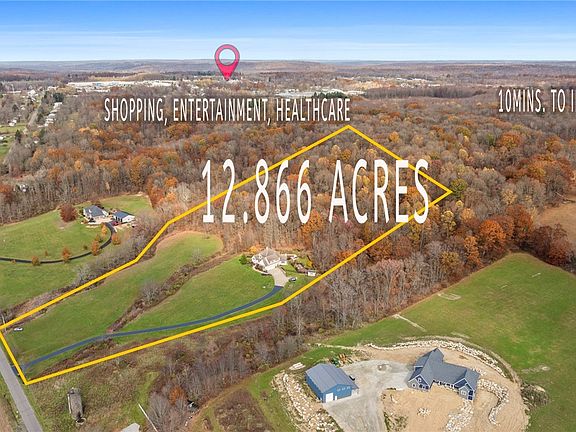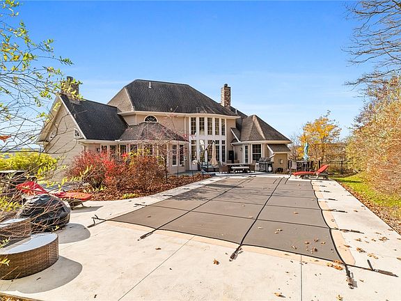 This stately 6 bedroom, 5 bath home on nearly 13 acres offers luxury, privacy, & tranquility. Step inside to a soaring 2-story entry & living room, setting the stage for sophisticated gatherings. The formal dining room is perfect for hosting, while the gourmet kitchen features granite counters, high-end appliances, large island & breakfast nook. A private office and cozy den have inspiring views, while the spacious 1st-floor primary suite boasts a fireplace, walkout, spa-like custom bath and walk-in closet. Upstairs, you'll find a bonus loft, 2nd master suite, & 2 additional beds w/shared bath. The finished lower level is a full 2nd living area w/ private entrance, including another full kitchen, family room, 2 beds, bath & bonus rooms. Outside, discover the in-ground heated pool, 2 fenced areas & expansive patio providing ample space for outdoor entertaining. With its 3-car attached garage, paved driveway, & landscaped grounds, this home offers the complete luxury living package.