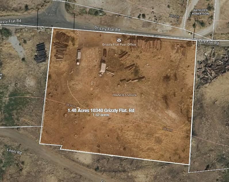 This is a very nice Gently Sloped Building Lot consisting of 1.42 Acres. History Abounds !!! This lot is located in the Heart of the Once Thriving Gold Rush Community's Downtown and the location of The Original Grizzly Flats Post Office built in 1854. Adjacent properties during the time were the early Grizzly Flats Pony Express Station and The Original Wells Fargo Office built in 1852. This newer home was recently lost in the Caldor Fire was 2240 Sq Ft built in 1969 and already has a paid water meter and existing septic system. This offers the new buyers the opportunity to obtain a permit to live on site during the construction. Considering the cost of the Driveway, Septic, Well, and Water Meter paid & installed, approximately a $30,000.00 + Value. You're almost getting the Lot For Free !!! The Cal OES debris clean up has been COMPLETED and the property has been cleared by the County and is ready to go !!!
