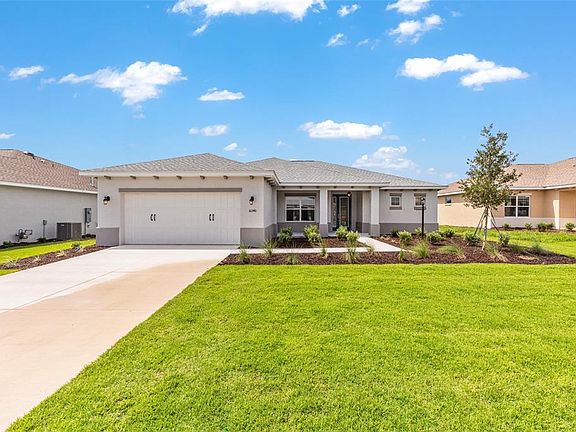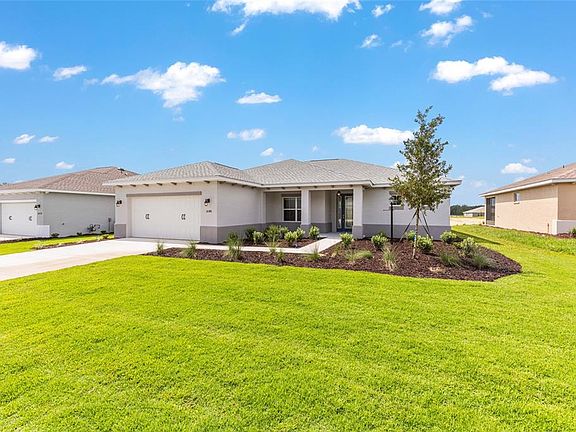 The Livingston model in Longleaf Ridge at On Top of the World is a brand-new, move-in ready home designed with comfort and flexibility in mind. Offering 1,718 square feet of living space, this two-bedroom, two-bath floor plan features luxury vinyl flooring throughout the main areas with tile in the bathrooms for a clean, modern touch. The open kitchen flows into the breakfast area and great room, creating a warm and inviting space to gather, while the flex room is ideal for a home office, craft room, or guest space. A laundry suite adds everyday convenience, and the two-car garage includes a golf cart space for easy access to all that this award-winning 55+ community has to offer. From golf courses and fitness classes to clubs, entertainment, and miles of walking trails, On Top of the World makes it easy to stay active and connected while enjoying life in the heart of Ocala’s horse country.