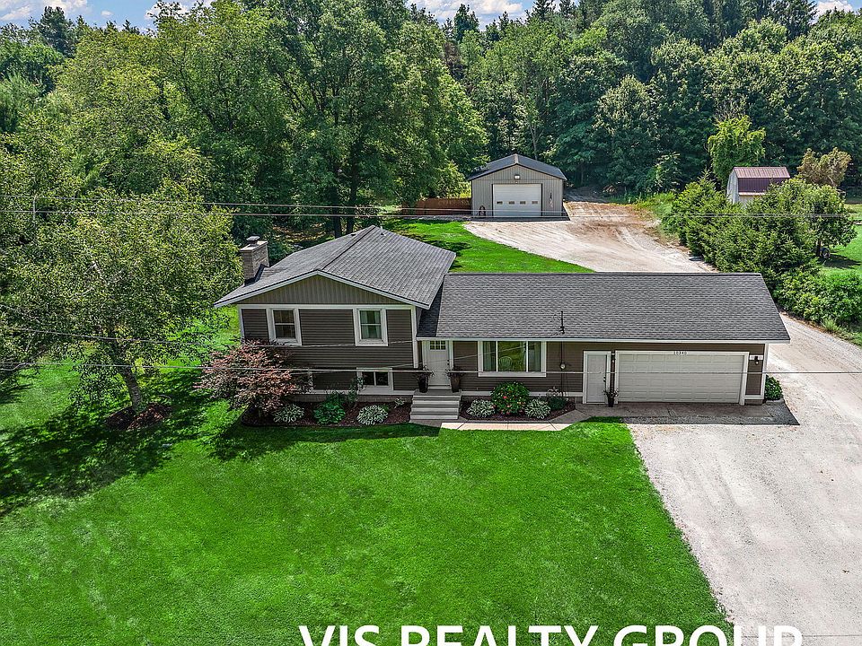 Rare opportunity! Completely updated 3-bedroom, 2 bath home situated on 1.2 acres of land and abutting 1665 acres of state land!! Bass River Recreation, located behind the property line, features endless trails for mountain biking, cross-country skiing, horseback riding, and more for over 6 miles! If boating is your desire, you will love the boat launch just minutes from the house on the Grand River with picnic tables and a beach area. This complete home package features a 30x40 outbuilding, a double-story shed perfect for a chicken coop, and a tree house for kids! Newer roof, furnace, A/C, windows, natural gas, gorgeous kitchen with quartz countertops and upgraded appliances, composite decking, newer patio, and so much more await you in this private little paradise!