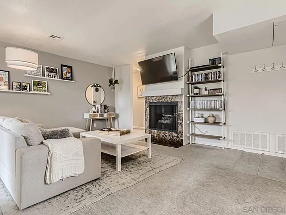 Welcome home to your modern balcony view condo. You’ll be in the cozy corner of the Terra Vista community enjoying breezes & your Southwest open view over the 15 freeway towards the hills from this modern condo. The traditionally open floor plan splits 2 Main bedrooms & 2 nicely updated bathrooms. The living room features an inviting fireplace & the sliding doors to the enclosed outdoor patio where you’ll see the hills above the 15 freeway in the distance. The kitchen boasts a gas range, SS appliances, & quartz countertops. Additional property highlights include the inside laundry, plenty of storage & closets, & comes with all appliances including washer/dryer & also an assigned covered carport parking space. Other benefits include a community pool, spa, laundry room, exercise room, shower with bathroom & Sauna. Access to the Excellent Poway Unified school district, close to parks, schools, shopping, markets, easy to access 56 & 15 freeways.