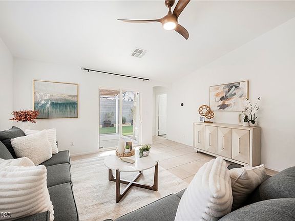 Discover this stunning single-story townhome in the highly coveted Cottonwood Terrace community of Summerlin! Nestled in a serene, meticulously maintained neighborhood, this home offers the perfect combination of comfort and style. The community boasts resort-style amenities, including a sparkling pool, fitness center, and scenic walking trails. Ideally located just minutes from the natural beauty of Red Rock Canyon and the vibrant offerings of Downtown Summerlin, this home blends convenience with charm. Inside, you’ll find an open and airy layout with vaulted ceilings that enhance the bright, inviting atmosphere. The kitchen features modern stainless-steel appliances, along with washer and dryer. The backyard is the perfect size with low-maintenance artificial turf, making it an ideal space to relax in. Don’t miss this exceptional opportunity — welcome home!