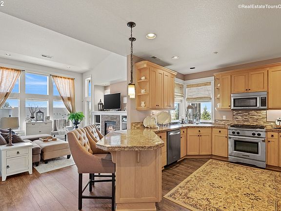 This gorgeous condo offers 2 beds,2 full baths,den (3rd bedrm ?), 2 gas fireplaces - one in the master bedroom, spacious 2 car garage w/shop area and storage, panoramic views of Portland city skyline and close proximity to freeway access, shopping, etc.Recent upgrades of 20K!HOA includes exterior maintenance of all buildings,landscaping,pool/clubhouse area,gates,Xfinity cable + internet, water/sewer.1 yr home warranty paid by Seller.