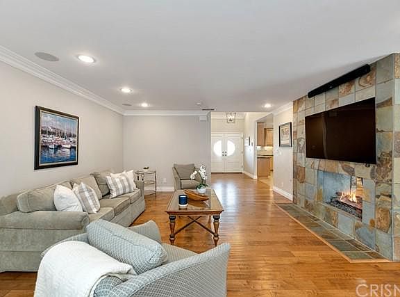 Highly sought after Porter Ranch location! Sprawling single story pool home, immaculate beyond words, shows like a model home! Over 2300 sq ft on a 17200 sq ft lot- 4 bedrooms, 2.5 baths. This is an entertainers dream home with open concept living. The inside and outdoor living space are seamless.. Dual fireplace in living room/Family room, with stunning views of this resort like back yard. Vacation right in your own back yard! Inviting formal entry with volume ceilings, scrumptious recently remodeled kitchen with every bell whistle! Viking 8 burner stove and oven, large center with seating , custom self closing cabinets, granite counters, custom backsplash tile imported from Spain. Master suite with cozy fireplace, 3 closets total. One walk in closet, 2 additional closets, master bath with designer jetted tub and free standing shower. 4th bedroom is being used as an office, lots of built ins. Generous sized bedrooms with lots of closet space. Duel paned windows, ceiling fans, bullnose corners throughout, newer HVAC, roof, partial finished attic, crown moldings and wood flooring & plantation shutters throughout. Sparkling pool, custom freestanding artistic gazebo/ the patio cover, its a master piece with trusses and massive beams, towering trees, enormous grass area and huge patio area. This is a one of a kind rear private yard. Half circle driveway, possible giant RV access, copper pipes, newer HVAC, recessed lights Cul-de-sac location. Highly sought after schools, Beckford or Germain as the Elementary school, Nobel Middle School.