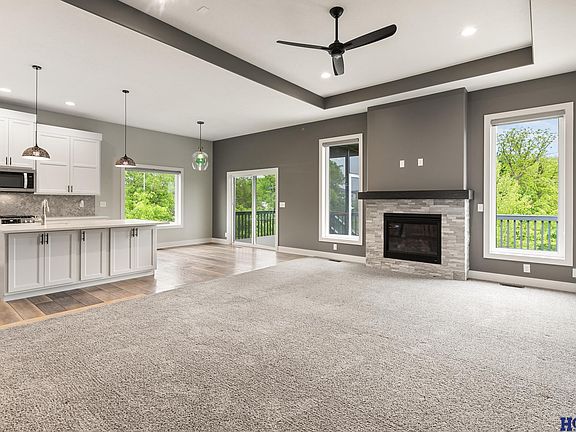 Located in desirable Waterford Estates, this stunning ranch sits on a nature lot backing to greenspace and Waterford Lake’s NW side—ideal for enjoying wildlife and peaceful views. The open floor plan offers a bright kitchen with quartz countertops, stainless appliances, walk-in pantry, and center island with seating. Dining area opens to an expansive deck with screened-in section—perfect for alfresco meals and relaxing outdoors. Great room features gas fireplace and large windows for natural light. Primary suite includes ¾ en-suite bath, walk-in closet, and walk-through to laundry. One additional bedroom and full bath complete main level. Daylight lower level adds spacious family/rec room with electric fireplace and wet bar, two more bedrooms, full bath, and ample storage. Garage includes three stalls plus fourth tandem. Fully fenced backyard and generous outdoor living space create a private retreat surrounded by nature.