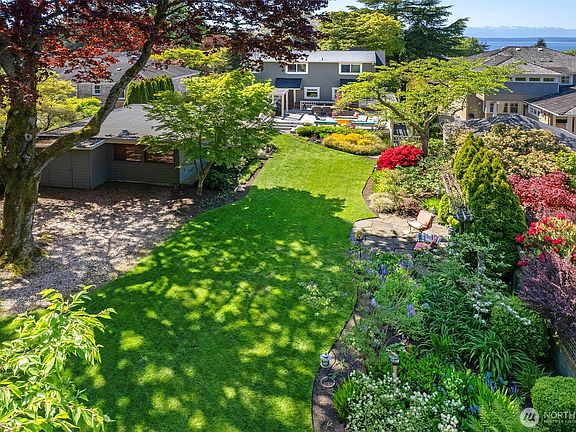 Welcome to this light-filled, impeccably maintained home in the heart of Blue Ridge! The open-concept floor plan invites you in to a warm, light & bright living space where views of the Sound & Mts can be enjoyed. The indoors & outdoors blend together seamlessly. Enjoy the large deck, mature landscaped yard, large flat lawn & private garden seating areas—ideal for entertaining or a peaceful retreat. Added bonus is the 2 car garage, radiant heat, street-to street lot +more. Additionally, the Blue Ridge community pool, tennis courts, park, beach & access to Carkeek Park trails are all nearby. This rare find offers privacy, charm, and spectacular surrounding in a community just north of vibrant Ballard. A must see to really appreciate!