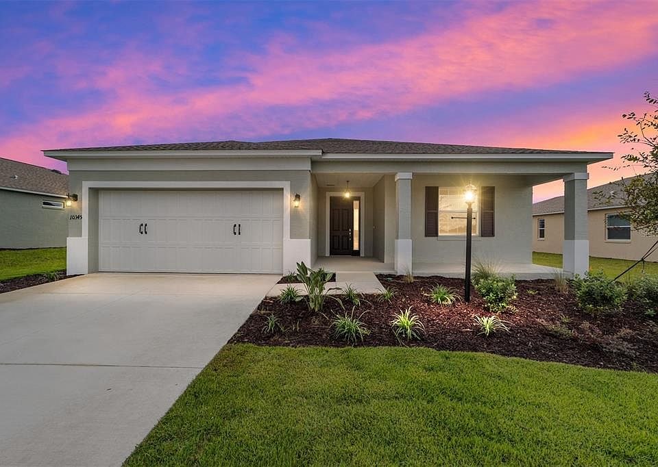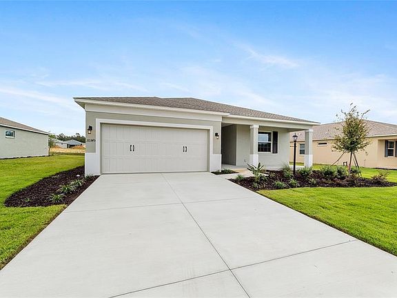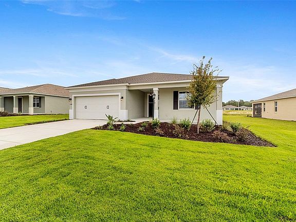 Beautiful Ginger Model in LongLeaf Ridge at On Top of the World! Welcome to this thoughtfully designed 2-bedroom, 2-bath home with a 2-car garage and a flex room with French doors, perfect for a home office or hobby space. The open-concept floor plan creates a spacious, inviting atmosphere for both everyday living and entertaining. The gourmet kitchen features staggered cabinets with crown molding, under-cabinet lighting, tile backsplash, quartz countertops, stainless steel appliances, and a large island — ideal for meal prep and gatherings. The living area seamlessly flows to the screened lanai through sliding glass doors, blending indoor and outdoor living. The primary suite offers two windows overlooking the backyard, a walk-in closet, and a spa-inspired ensuite with dual quartz vanities and a zero-entry tiled shower with built-in bench. The guest bedroom provides a generous closet and is conveniently located next to the guest bathroom, which features a single quartz vanity and a tiled tub/shower combination. Experience the active, vibrant lifestyle of On Top of the World, Ocala’s premier 55+ community offering world-class amenities, golf, swimming, fitness, and endless social opportunities.