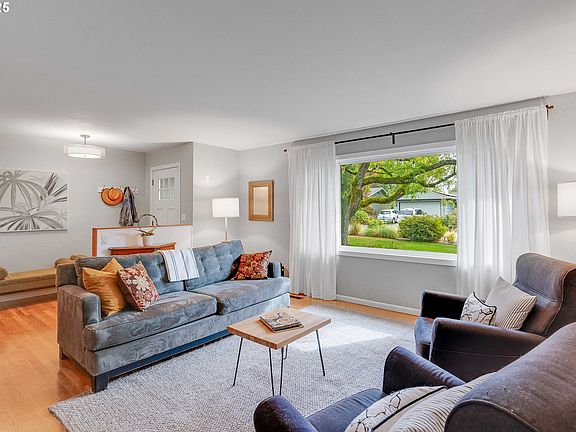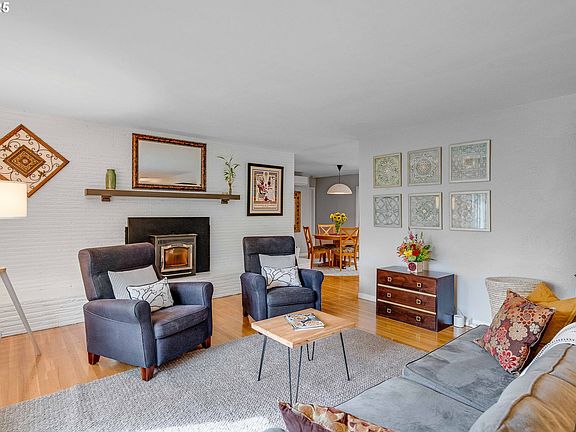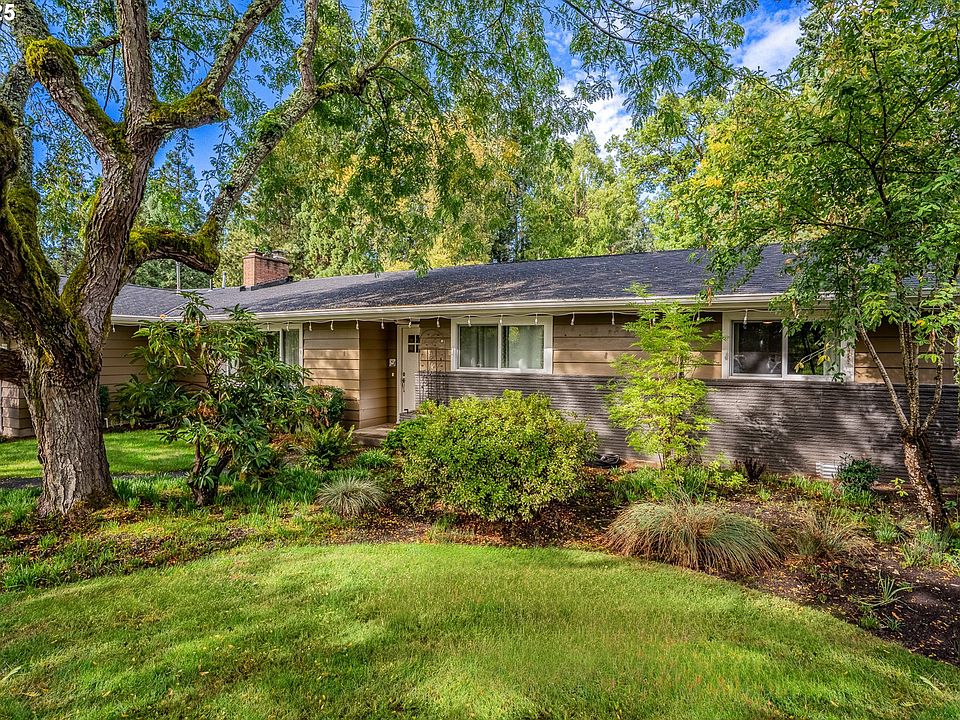 RANCH HOME FULLY REMODELED - NEW 750 SQ Ft GREAT ROOM & 1/3 ACRES. Live your best life with those you love in this spacious home designed to entertain - great room w/ kitchenette/bar, bath, ductless heat, radiant heat floor, roll-up doors to private landscaped yard featuring fruit trees, numerous mature trees, a spacious patio, a separate garden area, a large shed for storage along with a chicken coop. Whether hosting summer barbecues, planting your favorite vegetables and herbs, or simply enjoying a quiet evening, this outdoor space delivers. As you walk into the home you will notice original hardwood floors flow throughout, setting a warm and inviting tone. The spacious living room features a Harman pellet stove providing warmth throughout. A large picture window overlooks the front yard, filling the home with natural light. The dining area features a wood-burning fireplace that adds warmth and charm, making it a perfect setting for gatherings. This mid-century ranch stands above the crowd with a fully remodeled kitchen that showcases stainless steel appliances, sleek granite countertops, and custom cabinetry. The laundry located off the kitchen includes built-in cabinets and a large sink that adds practicality to the thoughtful design. The home's layout is exceptional, with the primary suite tucked privately on its own wing. Complete with custom storage closets and an updated ensuite bath. The opposite side features three bedrooms that share a spacious, beautifully updated bathroom with a double vanity and a hot water booster. With a two-car attached garage, inviting curb appeal, and updates throughout, this single-level mid-century home is a rare opportunity in Beaverton's Crestwood subdivision. It's move-in ready and designed to be enjoyed for years to come. Convenient, near RedTail Golf and Washington Square Mall.