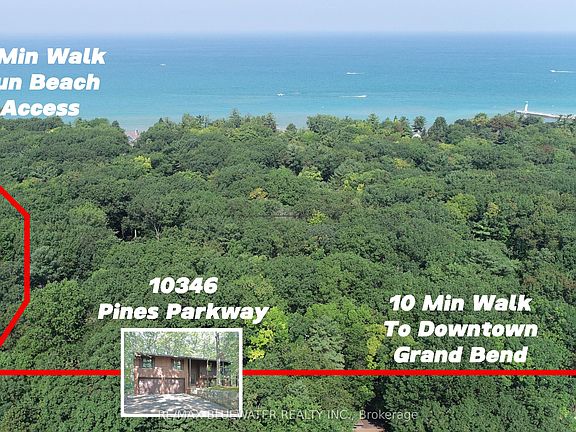 SOUTHCOTT PINES YEAR ROUND HOME JUST STEPS FROM DEEDED ACCESS TO PRIVATE SUN BEACH & SHORT WALK TO GRAND BEND AMENITIES! Welcome to 10346 Pines Parkway, Grand Bend in the highly desirable Southcott Pines subdivision nestled amongst the vast and beautiful Carolinian forest. Great curb appeal with double wide asphalt driveway leading up to 21x25 double attached garage and front covered entrance. This raised bungalow with its rustic charm offers a main floor of 1,242 sq. ft. Living room with a stone surround feature wall with wood fireplace insert. Spacious dining room allowing for ample room to enjoy dinner with friends and family. Kitchen with sliding door access to back raised deck. The 10x20 back deck was recently upgraded with composite boards and railing. Main floor offers an oversized primary bedroom with three piece ensuite and another two guest bedrooms that get to use the four piece bathroom with solar tube light. Lots of natural light throughout main floor! The fully finished lower level offers another 625 sq. ft. totaling 1,867 of finished square footage in the home. The lower level landing offers access to attached double garage, three piece bathroom, laundry room and spacious rec room. With the raised bungalow floorplan and the topography of the lot it allows for lots of natural light and a walkout sliding door from the rec room. This home has been an incredible place for this families two generations to create core memories that have lasted a lifetime. Now it is your family's turn to start creating those core memories today in Southcott Pines just steps from the shores of Lake Huron in Grand Bend today! Southcott Pines is an incredible lakeside subdivision with deeded Lake Huron beach access, long beach walks, incredible sunsets, clubhouse, community, kayaking, great walking/biking opportunities and so much more. Southcott Pines annual dues are $465 +HST.