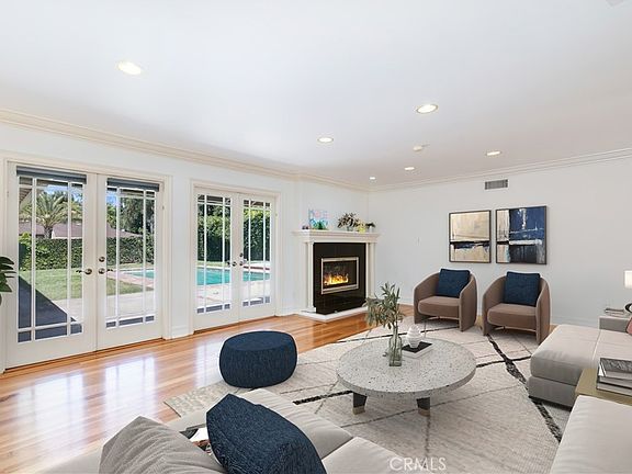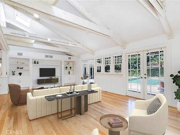 A desired Ranch style home situated on the corner of a tree lined cul-de-sac in Northridge, Porter Ranch, CA. With circular driveway, there is generous entry into the property, spacious parking spaces on driveway and attached 2 cars garage. The double custom front doors open to an expansive living room, and family room all with well maintained hardwood floors and plenty of windows and pristine French doors throughout. The kitchen features granite counters, stainless steel appliances, a Viking Range, plenty of cabinets and a separate laundry room. The Master suite is light and bright with high wood beam ceilings, walk in closet, double sink vanity and spacious standing shower and jacuzzi. Back doors from living room, family room and Master suite lead to views of landscaped backyard and large size swimming pool and jacuzzi. There are two additional bedrooms share a full bathroom, and the third bedroom has a bath and shower as well. Moreover, there is a powder room off the laundry/family room area. Few pictures have been virtually stagged. Beautiful neighborhood with mature trees and a very quiet setting for entertaining with friends and family. Must see to appreciate !!!