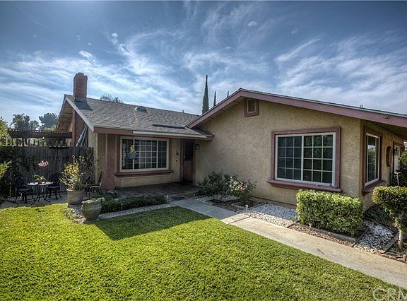 Great property that offers 5 bedrooms with 2 baths. Tax record shows 4 bedrooms but bonus room has a closet been used as 5th bedroom. tile floors newer kitchen with granite counter tops. central air, fireplace in living room. Both bathrooms are remodeled, cul- de -sac. Close to stores and Tyler mall. Easy access to 91 Fwy. Roomy backyard with patio and storage. The solar system, A/C and Heather only 2 years old.