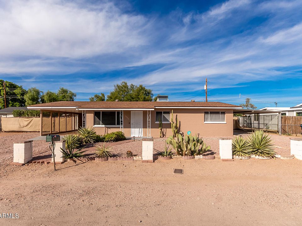 Welcome home! Discover this 3-bedroom residence with convenient carports, a wide RV gate, a low-maintenance desert landscape, and stunning mountain views. Inside, you'll find a living room with a soothing palette and plush carpeting. The eat-in kitchen comes with flat-panel cabinetry and sleek stainless steel appliances. You'll also find a well-sized bonus room, perfect for a workspace or hobbies. Have a good night's sleep in the cozy primary bedroom, offering a private bathroom for added convenience. Venture out onto the spacious backyard, complete with a covered patio, stylish pavers, multiple sheds for storage, and lush natural turf. Don't miss out on this fantastic opportunity!