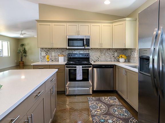 Gorgeous brand new Built home on 1.2 acres with beautiful Mt views and sunsets. Everything you need in a home. 4 Bdrms 3 and 1/2 baths with custom tile in all showers, quartz counter tops throughout. Ceiling fans in all bedrooms and living room, beautiful scored, stained concrete flooring that accents the designer color palette with warm tones. Stunning kitchen features quartz counter tops, custom cabinets, electric range, refrigerator and dishwasher. Extended covered patio and 3 car garage. Have peace of mind with high quality, no maintenance metal roof with an extended warranty. This could be your Dream Home!