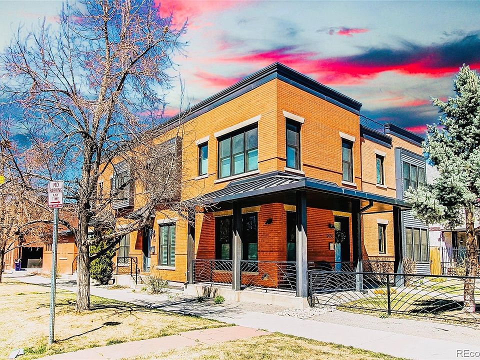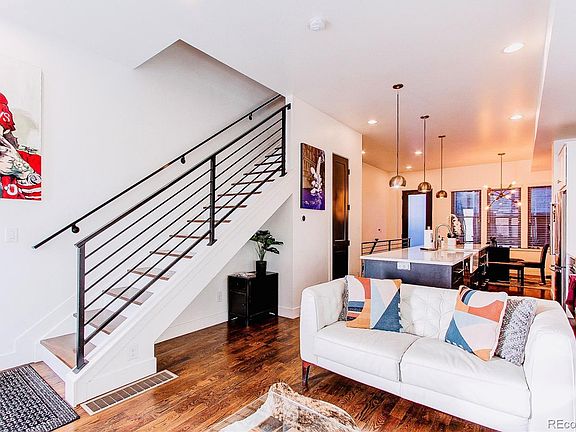 Welcome home to your modern townhome with NO HOA! Located in Historic Curtis Park and just steps away from the City and Rino District. Walk into this stunning property with an open layout, making entertaining a breeze. Enjoy the wood-stained windows, matching stained hardwood flooring, and the modern designer finishes. The large eat-in kitchen is complete with modern appliances and elegant finishes. The main floor features vaulted ceilings throughout with a convenient 1/2 bath.