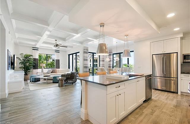 Lease from Dec 1 through May, 2019 in place. Booking now for later in 2019 and 2020. Absolutely awesome, NEW 3 bedroom condo, with exquisite detail and designer furnishings in newest building in Old Naples. This 2,500 sq ft corner unit with Great room, well appointed gourmet kitchen, and large wrap around lanai, is located in a luxury building with private, secure ground level parking. Walk to all the great amenities of the historic district, with fabulous restaurants, shows, boating, and beach. The unit has King Bed in Master suite, 2 twin beds in one bedroom, and a queen bed in the third bedroom, each with it's own bathroom. The den is outfitted with a sleeper bed, and set up for computer and TV use. There is a beautiful clubhouse, pool and spa, fitness center, and an outdoor BBQ area. See photos to appreciate!