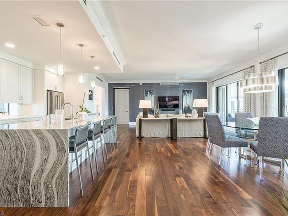 Welcome to sophistication in Naples Square. This Essex penthouse unit, boasts almost 2500 sq/ft of upscale living, including 3 bed + Den and 4 baths. Countless views can be enjoyed from the gourmet kitchen with upgraded quartz countertops, all balanced by the light and bright great room. This split floor plan offers ultimate privacy and open concept. The Deep oversized terrace overlooks all of Naples Square finest outdoor amenities, including the pool, spa and outdoor kitchens. Residents can entertain guests in the upscale social room, complete with chef's kitchen, billiards table and large screen TV's. Located within walking distance to world class shopping and dining on 5th Ave South. This is Naples Condo living at its finest!