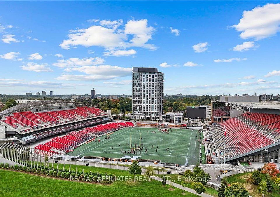 Lansdownes luxury condominium lifestyle, in the heart of The Glebe, secure front lobby entrance w/marble tile, luxury finishes, waterfall features & concierge service, beautiful two-bedroom, two-full bathroom w/eastern morning exposure & field side views enjoyed from your private covered balcony, inside you will find modern touches throughout w/engineered wide plank hardwood, flat ceilings, high-profile baseboards & thoughtful design details, bistro-style kitchen is both stylish & functional, featuring quartz counter tops, island w/seating, European cabinetry, valence lighting, 3/4 split sink framed by vertical tile backsplash, living room w/wall of windows & passage door to balcony, both bedrooms provide serene views of the field, primary bedroom suite w/multiple PAX closets & a spa-inspired 4 pc ensuite boasting twin sinks, quartz vanities, oversized walk-in shower & elegant finishes, exceptional amenities include a rooftop lounge & terrace overlooking the Canal w/BBQ station, a state-of-the-art fitness centre, guest suites & field side entertainment spaces designed for gathering & take in the game experience w/friends & family, private owned locker & secure underground parking w/direct underground access to shops, restaurants, theatres, Whole Foods & LCBO w/outdoor access to Ottawas best including the Rideau Canal, bike paths, skating, cafés, restaurants, patios & seasonal festivals, 24 hour irrevocable on all offers.