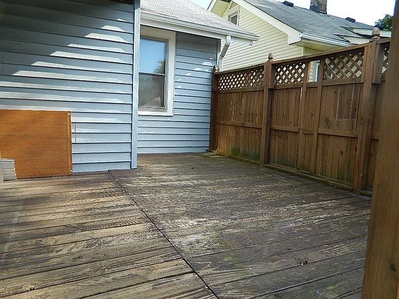 Great opportunity on this 2 bedroom with beautiful front porch. This home has formal dining room, nice sized living room and full basement for storage. Covered back deck with fenced in yard and detached garage. Subject to third party approval.