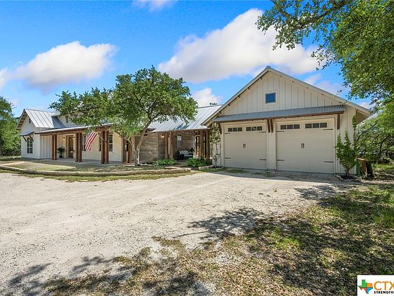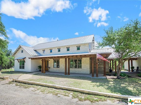 Stunning! Breathtaking Hill County farmhouse on a 2.45 acre serene property, majestic oak trees with the live waters of Rebecca Creek flowing through the rear of the property. Minimum restrictions in this tranquil neighborhood on a cul de sac. As you enter the beautiful main house with high ceilings, you will see the hand-hewn 19th century beams and corrugated metal ceiling. With 3b/3b, this 2910 sf main house has many unique features including custom pecan woodwork throughout, stained concrete floors, wood beams, wood ceilings, industrial shelving, limestone floor to ceiling fireplace and accent wall in master. The additional 248 sf guest suite & bath includes a wet/dry sauna located in the back of the oversized garage. Kitchen is a show stopper with butcher block and concrete counter tops, farm house sink, gas range, custom lighting, Outside you will find expansive breezeway, front and back patio, 6 person hot tub, chicken house, steps down the hill to clear waters of Rebecca Creek.