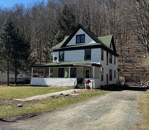 This Victorian Farmhouse was built in 1912. It is located in the hamlet of Cadosia in Hancock NY. The family room has a beautiful wood burning river stone faced fireplace. The woodwork and hardwood floors are beautiful in this home. The kitchen leads up a back staircase to 2nd floor. First floor laundry/pantry right off the kitchen. The unfinished attic is huge and has many possibilities. Large walk-out basement big enough to have a workshop. This property borders the Cadosia Creek which is a year-round trout stream. Sit on the wrap-around front porch and enjoy the country view. There is an open deck to sit on in the rear off the house to enjoy the beauty of the nature behind the house. Flat yard for kids/pets to play. The whole house generator will keep everything working even when the power is out. This single-family home would make a wonderful home to raise kids, however this beautiful ole gal would make a sweet bed and breakfast or a nice Air-BnB. Call today this won't last long!