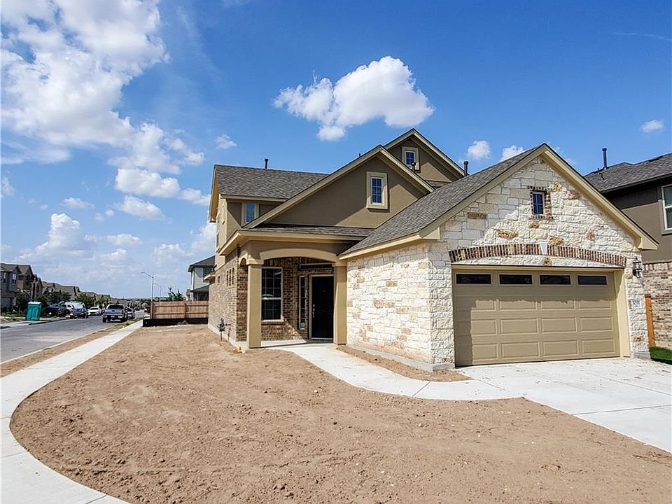 Buffington Homes New construction Hazeltine Floorplan 3 bedrooms, 2.5 bathrooms with large kitchen open to family room. Kitchen with Kent Moore Cabinets, granite countertops & SS Whirlpool appliances. Kitchen features a center island and bkfst bar for additional seating and entertaining. Large owner's retreat on first floor with walk in closet. Master bath features double undermount rectangular sinks & walk-in shower with seat. Located on a corner lot in quiet Madsen Ranch. Madsen Ranch has a 2.544 Tax Rate and is convenient to I-35 and 130 Tollway. The Dell Diamond, home to the Round Rock Express AAA minor league baseball team is just down 79 as well as the world famous Salt Lick Barbecue Restaurant in Round Rock.