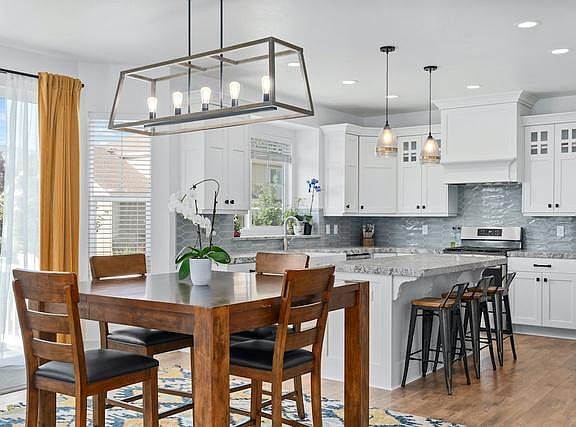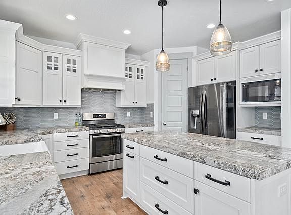 Luxurious Home with top of the line finishes including custom Mountain Crest cabinets, a range hood that actually vents outside, leathered granite countertops, farmhouse sink, custom light fixtures throughout, extra tall windows, 9ft door in the entry creating a grand entryway, Dining room pop out for extra space, the master bedroom is spacious and the master bath was upgraded to have a large walk-in shower with 2 showerheads. 12X24 tile in the bathrooms, and upgraded cabinets and countertops. The front and back yard was recently levelled and topsoil has been spread making it landscape ready!