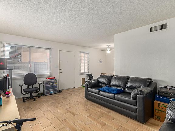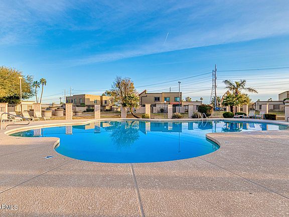 Desirable location within minutes of ASU campus, shopping and freeways. Updated 2 bedroom 1 bath home. Kitchen has tiled backsplash, refurbished cabinets and large pantry. Great room and dining area off kitchen. Wood-like tile throughout downstairs. Good size bedrooms upstairs with 1 bath. Private patio with flagstone. Laundry inside storage off patio. Short walk to community pool. HOA includes water & garbage collection. See this home today!