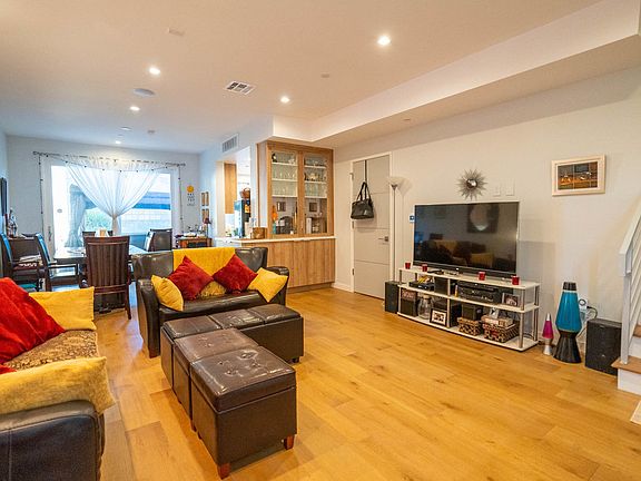 Home is where the heart is, and you will find that here. Located in Echo Park, just minutes to Downtown Los Angeles, this three bedroom, three bathroom modern townhome was built in just 2018. The sparkling real hardwood floors and vaulted high ceilings are a site to behold. The first floor includes a grandsized living room with guest bath, full dining area, and kitchen just off the dining room. A lovely backyard right off the kitchen/dining area is nestled right below the hillside. And yes, the hot tub is amazing. On the second floor, we find two opposite bedrooms, both with spacious walk-in closets and a shared jack-and-jill bath room, plus washer/dryer area. Going up is the master suite, complete with huge tiled shower and another full closet, which could even double as an office space. A picturesque balcony scene off the master, allowing for Dodger Stadium Fireworks, nature scenery, and mountain views. Both assigned parking spots are closest to the unit, tons of open guest parking.