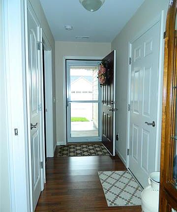 Welcome Home! This 2 Bedroom, 2 full Bath home in Gray Hawk offers almost 1400 sq ft of quality living space! This home has Laminate, ceramic tile & carpet flooring. The open floor plan leads to the Kitchen with a large, serving area/Breakfast bar & custom cabinets. The Dining area is spacious & flows into the Living Room. The Master Bedroom has a large walk-in closet, full Bath with easy step-in shower & linen closet. The 2nd bedroom has nice carpet and is located near the hall bath & the huge Laundry room. Enjoy outdoor living on the covered porch up front or the 3-season sun room, just off of the Living Room - perfect for morning coffee! The monthly HOA also includes Cable TV, the Emergency call system, some exterior maintenance, lawn care/snow removal & use of the community Clubhouse with fitness area. This unit also has a nice 2-Car Garage with epoxy floor & a no-step entry. Call Today to see this nicely finished unit - And get ready for fun, active 55+ Community Living!