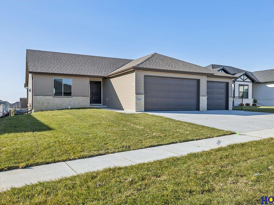 This is a beautiful Hickman ranch from Meals Construction. The floor plan is functional and efficient and boasts over 1500 Sq Ft on the main level and a fully finished walkout basement. It is located in the tranquil Terrace View neighborhood in Hickman in the Norris School District. It has all the features you're looking for- 3 car garage, 2 bedrooms up, 3 bedrooms down, quartz counters throughout, large kitchen island, walk-in pantry and stainless appliances. The walk-out basement boasts 9' ceilings. Built with 2x6 exterior walls and exterior foam wrap for a quiet, energy efficient home. The 3-car garage is dry-walled and heated. A covered deck & patio and sod & sprinklers are both included. Your new home awaits, call today!