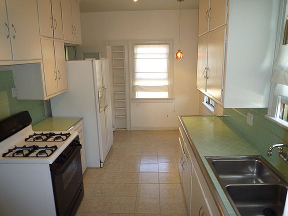 Your new home could be a lovely Spanish style duplex in a quiet neighborhood with hardwood floors and French windows. This UPPER unit boasts close to 1,200 sq.ft. of living space. A huge apartment, it has 2 large bedrooms and 1 bathroom along with a large kitchen, living room, formal dining room that is light and airy. The kitchen has green tile counters and a ceramic tile floor, while the bathroom contains the original period white tile. A gas range and refrigerator are supplied in the kitchen. Washer and Dryer are included as well. The unit also comes with a private enclosed garage for one vehicle. Additional parking is available on the street. AVAILABLE FOR OCCUPANCY July 1 GREAT LANDLORD