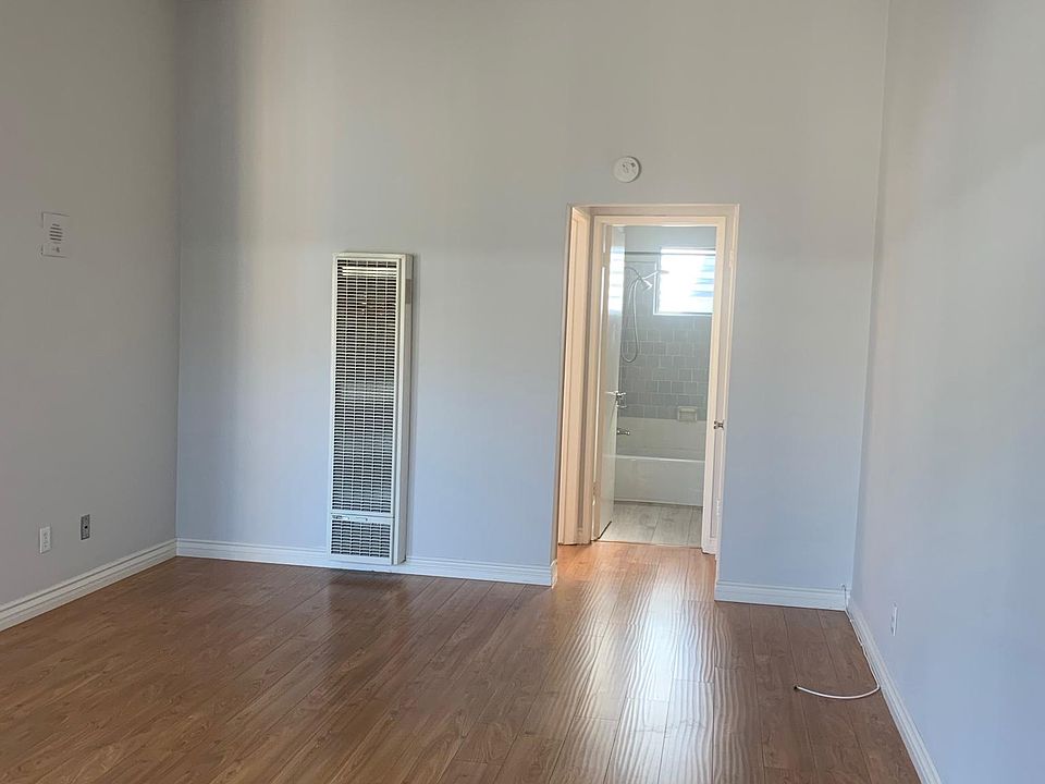 Large upper 1 bed/1 bath in garden style complex on a beautiful tree lined street. Unit has high vaulted ceilings. Has lots of windows and light. Full kitchen with granite counters. Stove and fridge. Full bathroom. $50 for parking. Laundry on site.
