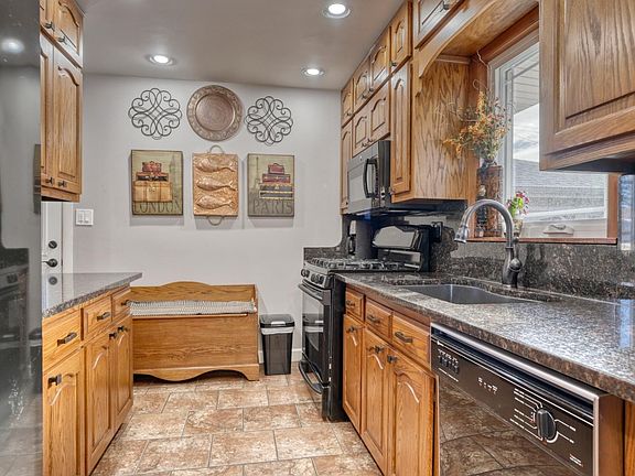 STUNNING ALL BRICK RANCH WITH FULLY FINISHED BASEMENT, this house has it all!! 3 bedrooms and a full bath on the main floor, fully updated kitchen with upgraded cabinets, granite counter tops and backsplash. Large bathroom with closet. Original hardwood floors! Custom Made Vinyl Windows, New Doors on Main Floor. Basement rec room has lots of space for gatherings and is drywalled with recessed lighting. Plus, a home office, play or music room, you decide. Home has lots of closets and storage. Garage is drywalled, ceilings too! And, has insulated door, attic stairway, furnace, and window A/C. Driveway is reinforced concrete. Vinyl Fence is heavy duty, and only 3 years old, with 2 separate doors for garbage receptacles. Enjoying summer evenings in the privacy of your own backyard watching the pond. Pleasing color palette that will match any decor. This house is move in ready and waiting for you. HOME WARRANTY INCLUDED