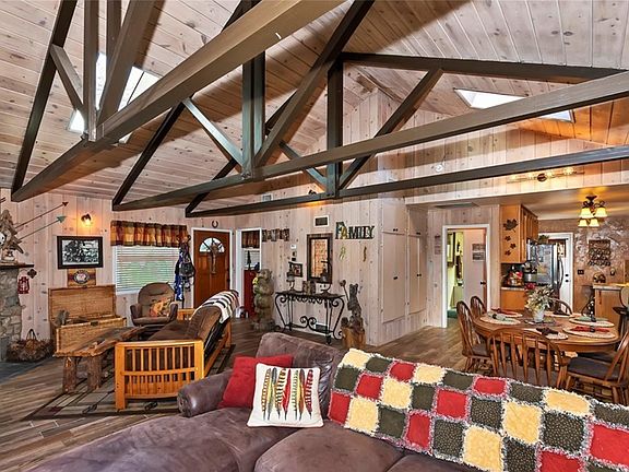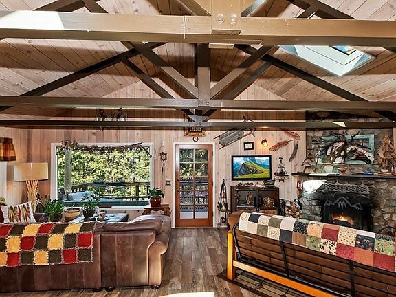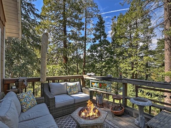Beautiful mountain home with cabin feel hidden below the street with a view of Lake Gregory. Spacious, clean and modern fully furnished 2 story with 2BR/1BA downstairs (one w/private entrance) and 1BR/1BA upstairs.