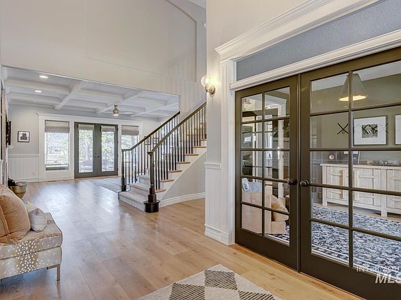 Looking for a beautiful home in the prestigious Two Rivers Sub with waterfront views and completely remodeled from top to bottom? Look no further than this brilliantly custom designed home! Every surface of this home has been renovated! From the quartzite kitchen counters, tile backsplash, custom cabinets, high end plumbing fixtures to the bathrooms that have been updated, this home has it all! With designer colors, luxurious finishes, new flooring throughout, new lighting/ceiling fans, freshly painted interior & exterior, everything is ready for you! With primary bedroom on the main floor, a junior suite upstairs, two additional bedrooms and bonus this floor plan is ideal. The backyard is the perfect place to entertain with a covered patio, built-in BBQ, views of the water and the additional private outdoor balcony living space. Two Rivers is a sought-after neighborhood conveniently located with a community pool, basketball, tennis courts and miles of paths just adjacent to the Green Belt/Boise River.
