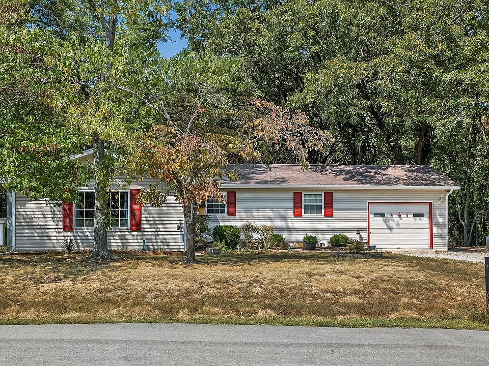 Welcome to your peaceful retreat nestled on 2.08 wooded acres in the Galena school district, this beautifully updated 3-bedroom, 2-bath ranch-style home offers comfort, privacy, and charm. Inside, you'll love the open-concept layout, cozy gas fireplace, and kitchen featuring maple cabinetry and full appliances. Enjoy carpeted bedrooms for comfort, low-maintenance vinyl and tile in the main living spaces, and a spacious backyard surrounded by mature trees. With the spacious lot backing up to wooded acreage, this property feels tucked away from the bustle of town while still keeping you close to local conveniences.