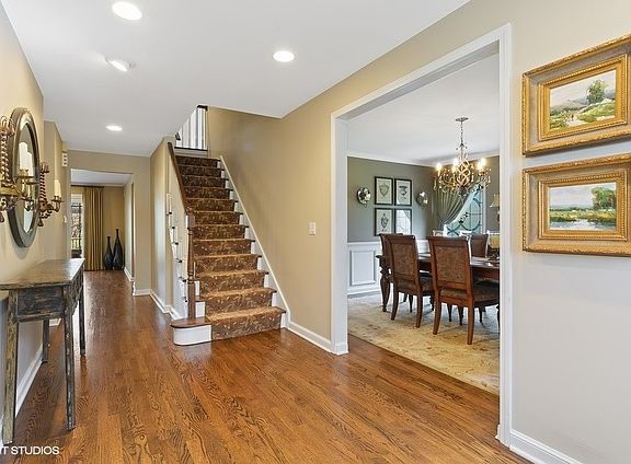 Prepare to fall in love with this meticulously maintained move-in ready 5 bed/3.5 bath Deerfield home. Inviting foyer opens to separate formal living room and dining room with crown molding and wainscoting. Updated kitchen with granite counter tops, newer stainless steel appliances including built-in high end refrigerator, double ovens, gas cooktop, under cabinet lighting and breakfast area with pantry closet. Warm family room directly off the kitchen with built-in wall unit, surround sound, gas fireplace and doors leading out to large deck with seating. Wonderful first floor private office. The main floor also includes a mud room space with built-in cubbies off the garage, laundry room, recessed can lighting and beautifully finished hardwood floors throughout. Gorgeous primary bedroom suite boasts a sitting area, elegant marble bathroom has large shower with rain shower & seat and walk-in closet with custom built-in organizers. The second floor has three additional generous sized bedrooms all with walk-in closets with built-in organizers and a beautifully remodeled hall bath with double vanity sinks. Fabulous finished basement features a wet bar with beverage fridge and built-in microwave, surround sound, full bathroom and 5th bedroom perfect for guests. Professionally landscaped fenced yard with underground sprinklers. Newer windows, mechanicals and Trusty Warns battery back-up. Award-winning Deerfield schools and ideally located within walking distance to parks and pools as well as easy access to town, train and tollway. This perfect family home has been lovingly cared for and it shows. Only thing to do is move right in!
