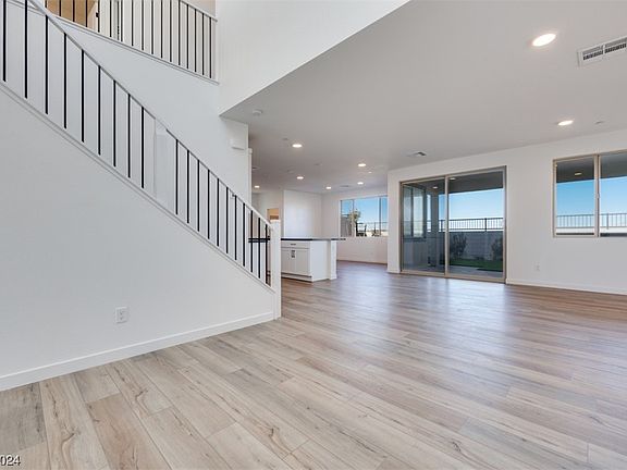 Brand new modern 2 story home near Mt Charleston and Skye Canyon! This new community is located near new shops, entertainment, dining, and you can enjoy the community pool and park. As you enter the spacious courtyard, it will lead you into the open foyer. The open floor plan makes the home feel very bright and spacious. The kitchen is a dream with custom backsplash, oversized island, and stainless steel appliances. The great room is just off the kitchen and overlooks the mountains and landscaped backyard. Upstairs boast a loft, perfect for extra space. The primary bedroom is beautiful with plush carpet, and ensuite bathroom featuring a large spa shower. The backyard has been fully landscaped and is easy to maintain. Enjoy the peace and quiet with no neighbors behind you!