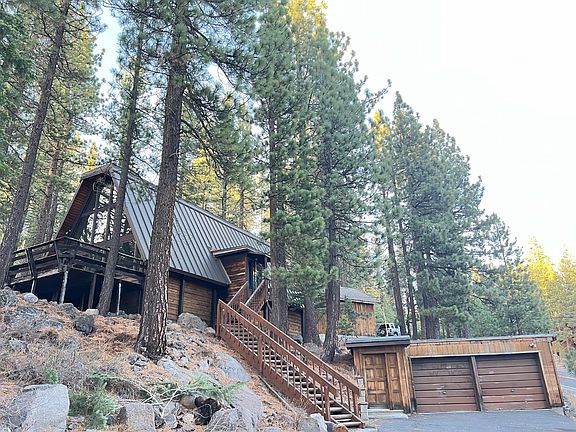 Tucked along Northwoods Boulevard, this rare no-HOA property offers a true mountain-town lifestyle with direct access to the Tahoe National Forest right from your own backyard. Step outside to miles of trails for hiking and snowshoeing or head just a few minutes down the road to historic downtown Truckee, local schools, and the community gym. Inside, the home retains much of its original mountain charm, with warm wood accents and floor-to-ceiling windows in the living room that frame forest views and fill the space with natural light. The standing-seam metal roof and dual-pane windows were smartly updated from the original, offering comfort and durability for four-season living. With three bedrooms, two baths, and 1,494 sq ft, this home features an open main living area perfect for gatherings after a day on the slopes or trails. A detached two-car garage and dual driveways provide ample parking and easy year-round access, a rare convenience in this part of Truckee. Whether you're seeking a primary residence or a weekend retreat, 10354 Northwoods Boulevard delivers authentic Tahoe living with the freedom of no HOA.