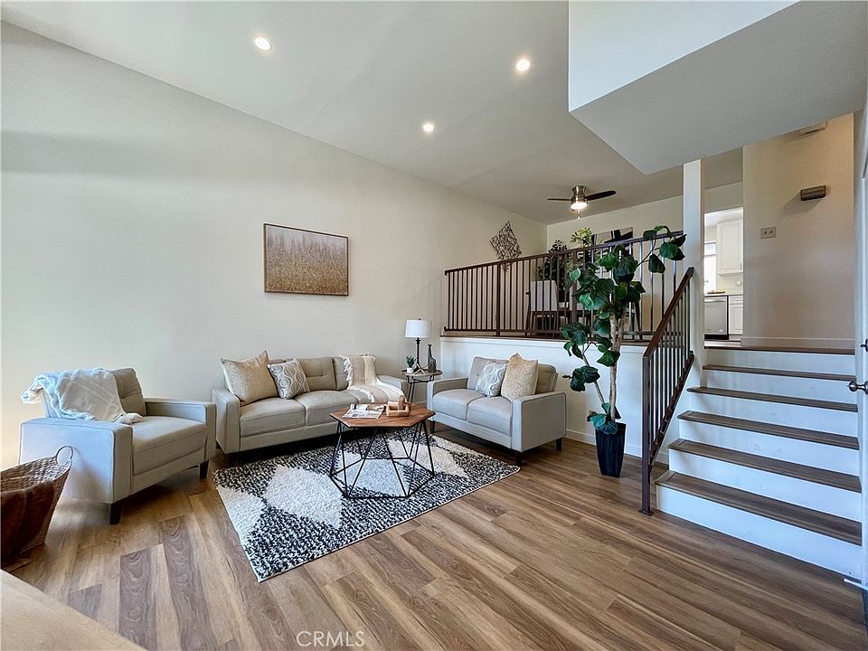 This beautifully remodeled townhome features two bedrooms and three baths. Upon entering, you're greeted by a spacious, open living room leading up a few steps to the dining room, ideal for hosting guests. The kitchen boasts new cabinets, quartz countertops, stainless steel appliances, and a cozy breakfast nook. The upstairs is home to a large primary suite with a walk-in shower, vanity area, and private balcony. The second bedroom is also an ensuite with a full bathroom. Additional highlights include laminate flooring, an indoor laundry area, recessed lighting, ample storage, and an attached two-car garage via a gated driveway. Enjoy the small, welcoming community with a gated pool on those warm Valley days.