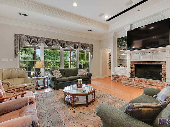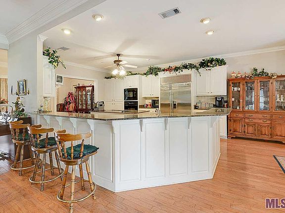 Fantastic piece of property! No Flood Zone, beautiful CUSTOM home (built in 1999) nestled on 6.3 acres of land. Ample space to bring on the horses, ride your all-terrain vehicles among the many fruit trees; satsumas, figs and lemon trees just to name a few. This property, built by Donald Dawson boasts a 30.0 x 43.0 open barn and a 14.0 x 40.7 RV Port with land galore to spread your wings! Your mood will definitely change as you leave your stressful busy day behind and coast down the private driveway approaching this grand piece of property you can call home! You're greeted by massive front columns with a brick floored porch and gas lanterns. This home features an open floor plan, office/study with several built-ins and wood floors off the large foyer which is open to the formal dining and living area. Extensive triple crown molding / millwork and wood floors in the dining room, excessively large family room with fireplace and built-ins, wood floors, wet bar including refrigerator and ice-maker and a wall of windows open to the porch /patio. Kitchen features granite, sub zero refrigerator, large island w/cooktop, breakfast bar and breakfast area. Split floor plan with a GIGANTIC master bedroom, spacious enough to have your own separate living area, with tray ceilings and two walk in closets. The master bath is just as huge with double vanities, make up area, large jetted tub and separate shower. Guest bedrooms are generous in size with large closet space and guest bathroom on separate wing and half bath off the kitchen and a large laundry room with room for an extra refrigerator, sink and cabinets. Spacious two car garage with a storage area of 243 sq. ft. that opens both to the garage and back patio area. Roof was replaced in 2015, all door frames are wheel chair accessible, intercom system throughout, extended driveway for extra parking, post tension slab, irrigation system, 2 A/C units (5 & 2.5 ton) and 2 hot water heaters and special isoline insulation.